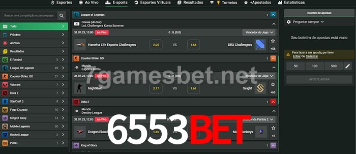 O 6553Bet oferece uma grande seleção de opções de apostas em e-sports com probabilidades competitivas